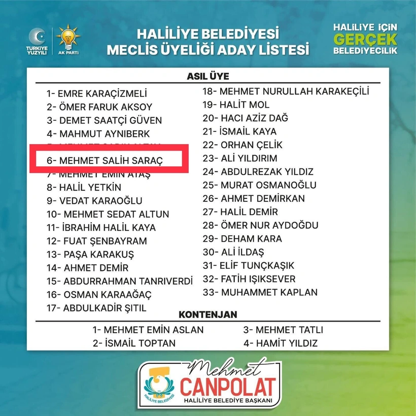 AKP’nin Şanlıurfa İl Başkanlığı ise Saraç’ın adaylığıyla ilgili herhangi bir açıklama yapmadı.